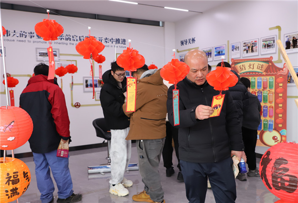 活动现场,火红的灯笼高高挂起,大红的福字装点着周围,浓浓的节日气息扑面而来。数十盏红灯笼下悬挂的灯谜别具特色,谜面内容涵盖成语典故、传统文化、地域文化等多个领域,既考验智慧,又富有趣味。职工们热情高涨,穿梭在灯笼之间,或独自凝神思考,或三五成群讨论,不时传来猜中谜语的喝彩声和掌声,猜中谜底的职工们还能兑换丰厚的零食奖品。同时,职工食堂还贴心的准备了美味香糯的芝麻汤圆,让职工们在忙碌的工作之余感受到节日的温暖与工会的关怀。