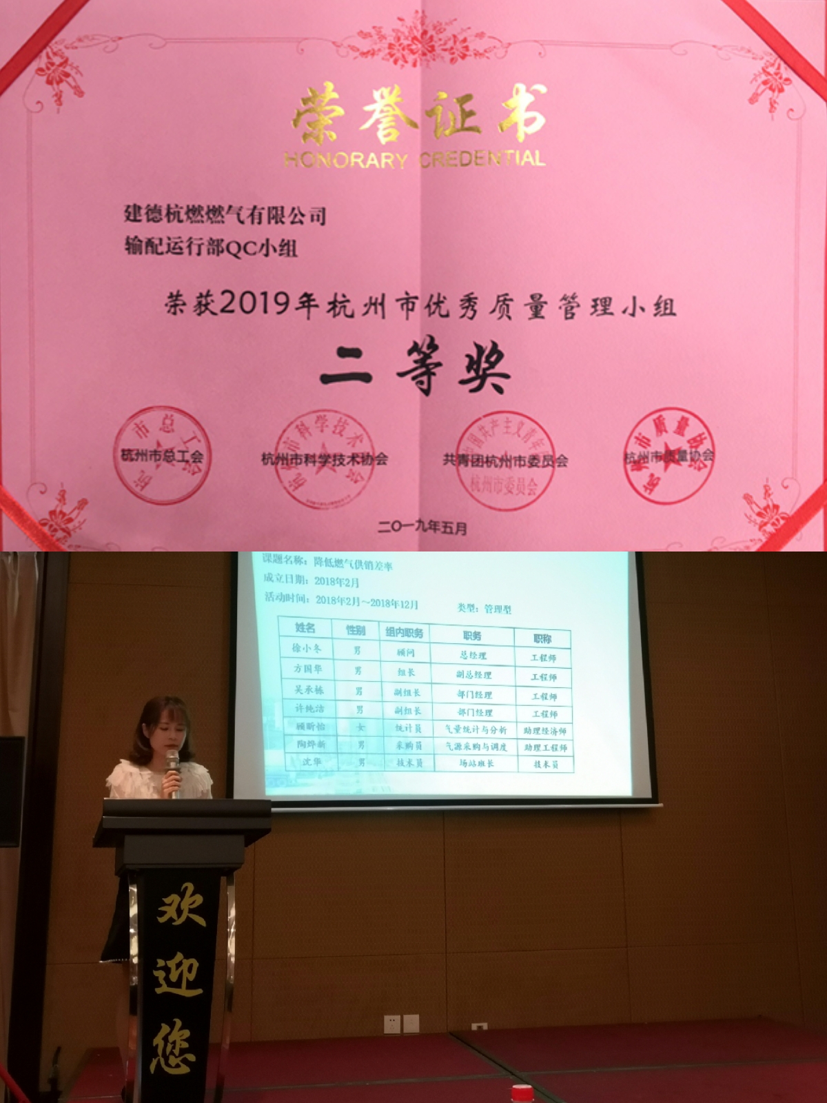 台上一分钟,台下十年功,辛劳的汗水换来丰硕的成果。建德公司把QC课题作为一项重点质量控制的手段来抓,将质量控制与生产运行相联系,解决运行中存在的问题,提升公司经济效益。QC小组成立于2018年2月,从QC课题立项开始,小组成员实地调研、统计、分析,广泛收集小组成员意见,利用头脑风暴、集思广益,从人、机、料、法、环5个方面对供销差率高的原因进行因果分析,不断完善改进报告。在获得城投集团QC发布第三名入围市级QC发布的参赛资格通知后,小组成员更是全心全意付出和努力,每个细节层层把关,经过一次次排练和完善,在比赛现场用专业细致的讲解向评委们展示了建德公司在降低燃气供销差率方面的质量控制成果,充分展现了银河 人的风采。经过该QC课题研究,实现了建德公司2018年燃气供销差率较2017年降低0.53%,保证卸液充分率,为公司增收了33.76万元。