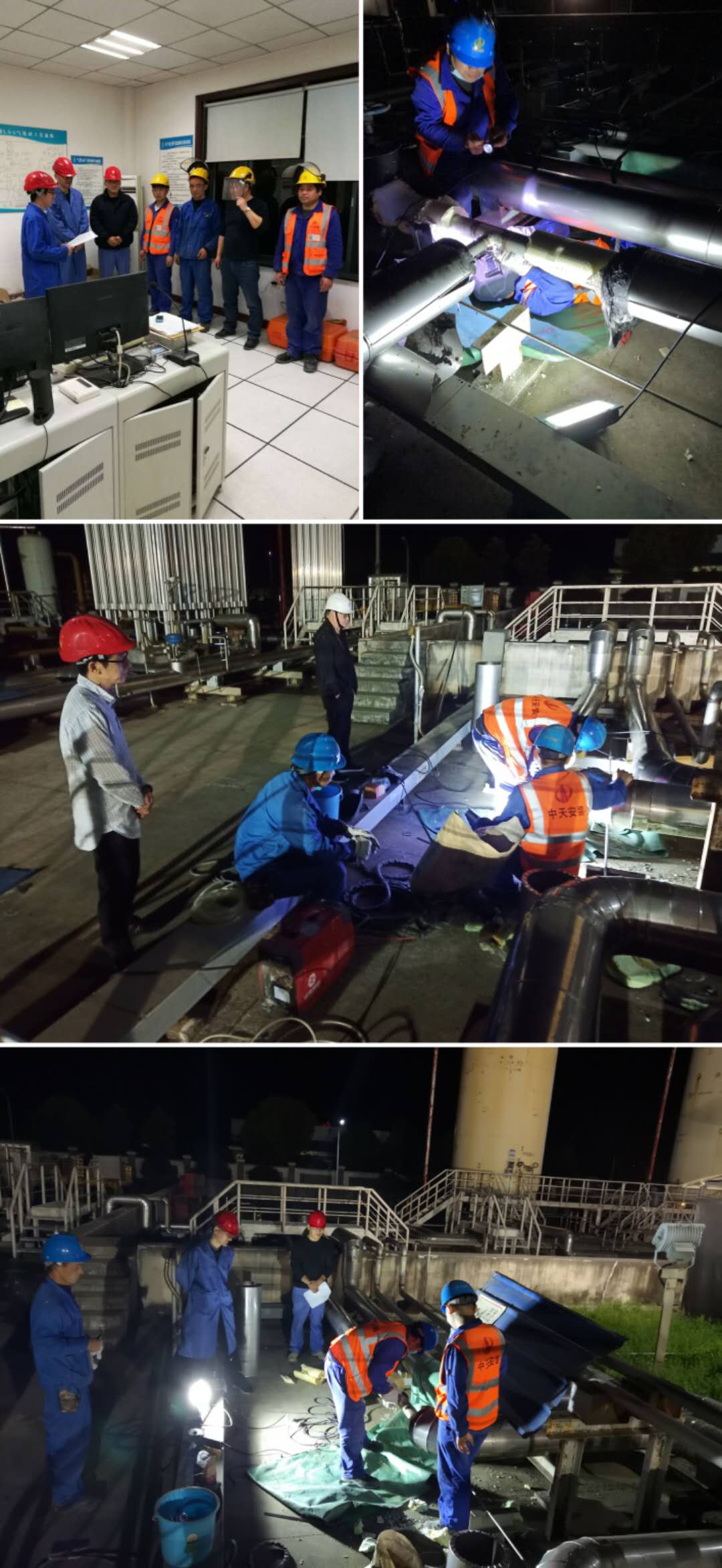 25日19时30分,修复作业准时开始,公司总经理方国华和原施工单位项目负责人亲临现场指挥。公司与施工单位严格按照作业方案,在确定各项安全措施到位后,有序进行放散、吹扫、割接和置换等一系列工作。经输配运行人员和施工作业人员不畏辛苦,持续作战六个多小时,最终于26日凌晨2点顺利完成两处液相管焊点修复,并经第三方扩探6处合格。随后输配运行人员切换为LNG供气。