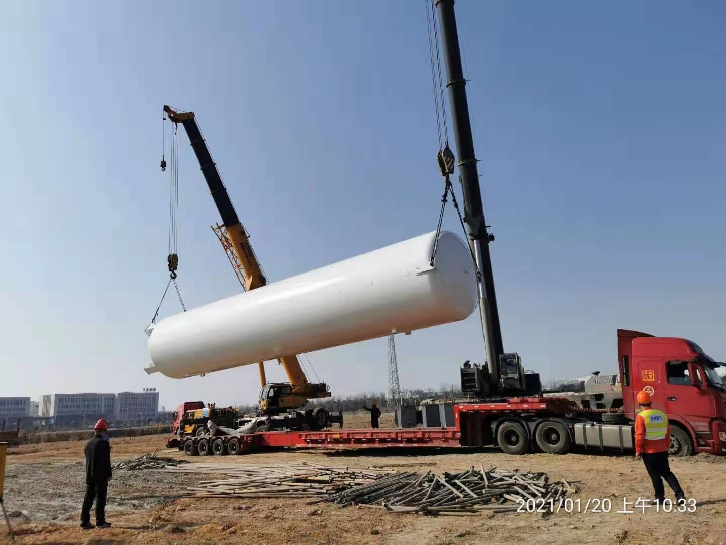 当前疫情防控持续,今天的吊装工作,大江东公司建设发展部早早就安排工作人员对进入场地的各类人员进行了“亮码、测温、登记”工作,在保证吊装工作顺利的情况下,合理控制进场人员数量。在施工人员查勘后,由于表层浮土较多,本次吊装采用200吨吊机,为保证安全吊机底部进行钢板敷设加固。下午13点,吊装工作顺利结束,印着大江东能源Logo的储罐牢牢的矗立在现场,标志着项目建设又向前跨了一步。下一步,大江东公司将合理安排施工力量,确保疫情防控的同时,加快项目的早日建成。