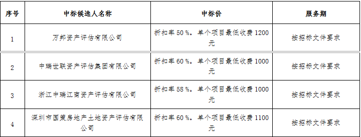 杭州市银河官网 有限公司2023-2024年度房产、土地资产评估服务供应商库中标候选人公示