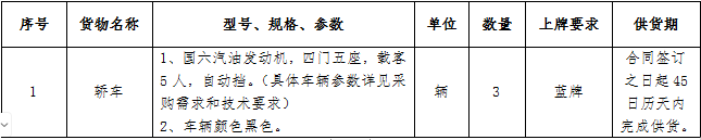 1.本次招标范围为三辆轿车的供货、质保及售后服务,具体清单如下: