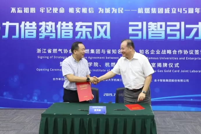与浙江大学能源工程学院、浙江工业大学机械工程学院、浙江财经大学、金卡智能集团签订战略合作协议,目的在于通过建立合作纽带、聚焦共赢优势、挖掘增长动能、共创美好城市,在政策研究、人才培养、实习就业、科学研发、产业发展、城市服务等方面,实现深层合作与共赢发展,为城为民共同打造全国领先、世界一流的燃气服务“杭州经验、杭州模式”。