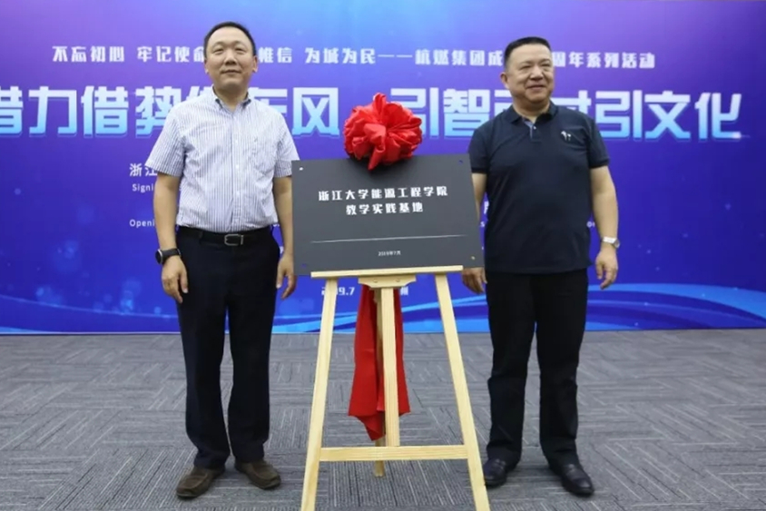 ▲ 俞自涛、芦俊为浙江大学能源工程学院教学实践基地揭牌
