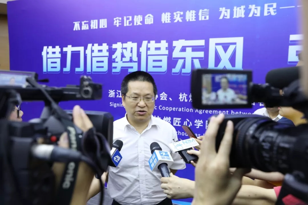 副总经理王忠平接受浙江钱江频道、杭州日报、杭州电视台等15家新闻媒体现场采访