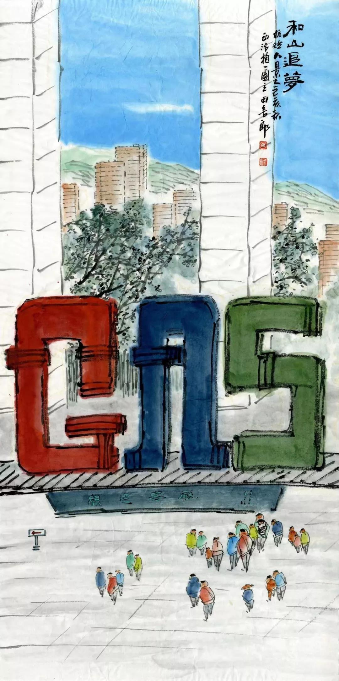 此景指坐落在小和山的杭州绿色能源体验中心。和山,指杭州地名小和山,又有“和气”、“暖和”之义;追梦,对未来的追求-银河