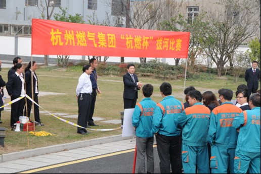 杯”拔河比赛胜利开幕。本次比赛由(集团)公司工会主办、后勤分公司协办,来自集团12支代表队参加比赛,(集团)公司党委书记、董事长吴晓甦主持开幕式,党委副书记、工会主席王进忠担任组委会主任。经过十五场激烈竞逐,实力强大的百江公司代表队一举夺魁,营业分公司代表队和工程安装公司代表队分别赢得第二、三名,输配分公司、管网分公司、杭天公司分获第四、五、六名。